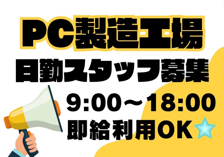 即払い【日勤】製造ライン/簡単PC工場のお仕事/時1226円+交
