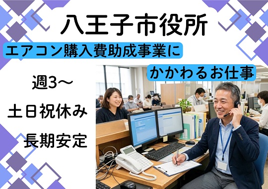★期間限定★【市役所でのエアコン購入費助成事業に関するお仕事】八王子市◆時給1350~1400円+交通費