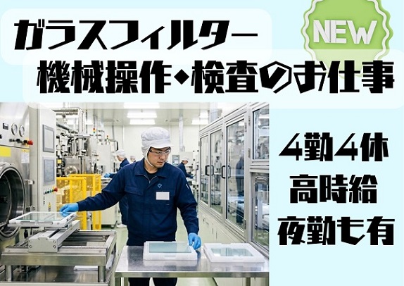 ≪夜勤・日勤選べる≫高時給1600円!深夜時給は2000円!工場でのガラスフィルターの製造にかかわるお仕事!
