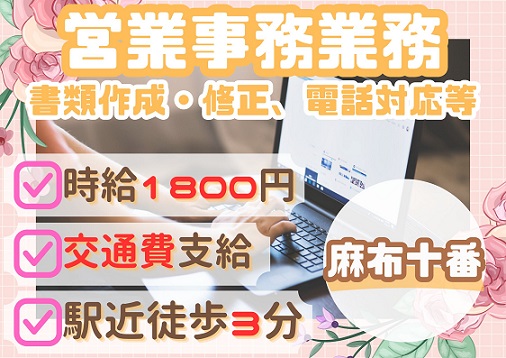 【駅チカ徒歩3分】高時給1800円!営業事務/土日祝休み