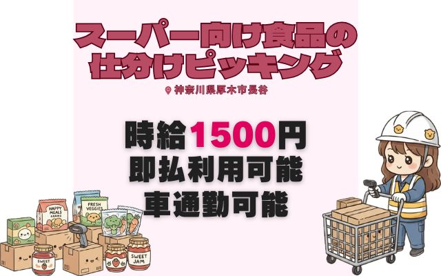 【厚木】未経験者歓迎!食品の仕分けなど♪時給1500円