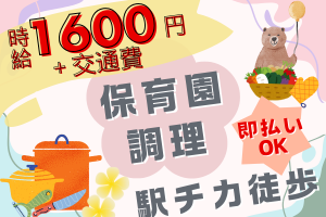 【上大岡駅】高時給1600円+交通費!保育園での給食調理