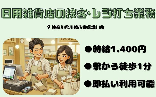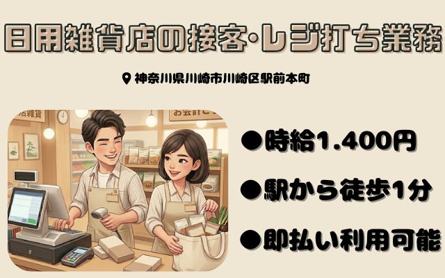 未経験OK♪【川崎】接客・レジ作業のお仕事*時給1400円