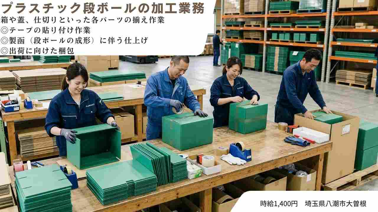 【プラスチック段ボールの加工】時給1400円/八潮市