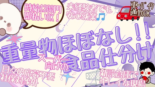 募SK【時給1300円】重量物ほぼなし!新設倉庫内での仕分け