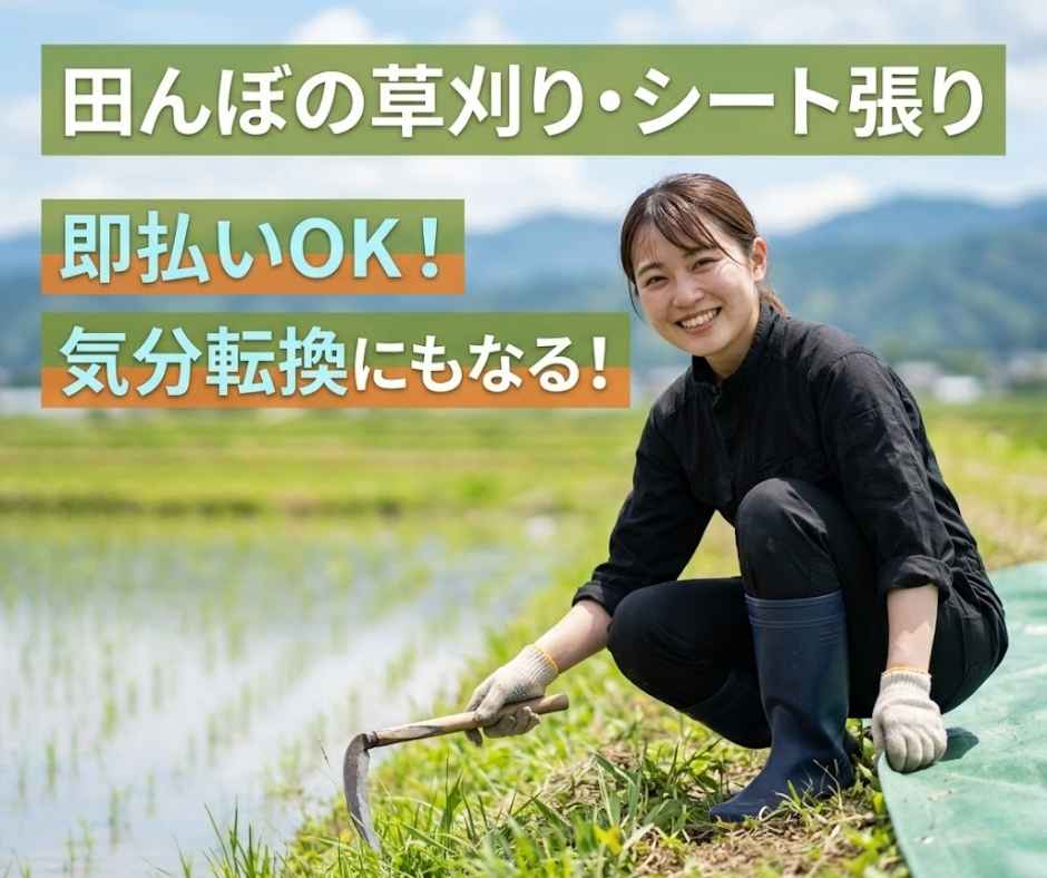 筑北村:時給1200交通費500田んぼの草刈り・シート張り