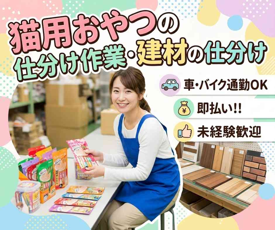 葵区! 猫用おやつの仕分け作業と建材の仕分け作業!
